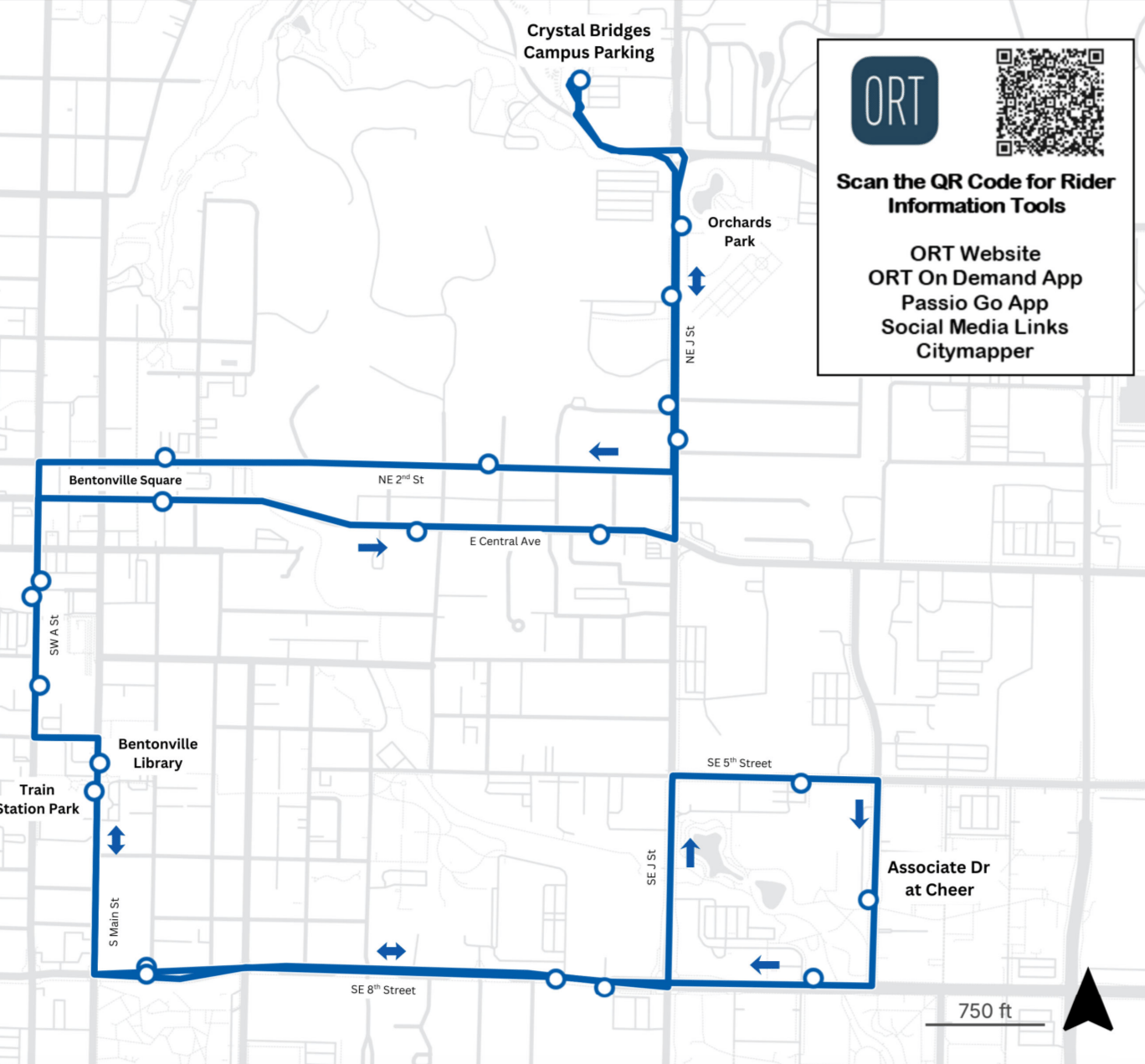 The new downtown route includes about 20 stops, serving destinations that include Crystal Bridges, the Square, the library and the new Walmart Home Office campus. It runs from 7 a.m. to 7 p.m. Monday through Friday and is free to ride.